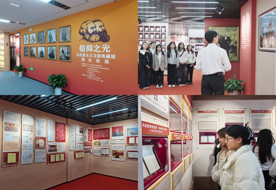 交流研讨结束后,在华师凯发娱乐党员代表的引导下,武纺凯发娱乐全体党员前往“信仰之光——马克思主义文献典藏展”进行参观。本次展览以“‘两个结合’:最大法宝”为核心主题,全面呈现出中国共产党成立100多年来推进马克思主义文献收集、翻译、研究、宣传的奋斗历程和伟大成就。展览分为“真理力量 薪火相传”“手稿藏书 经久弥珍”“经典巨著 思想丰碑”“‘两个结合’:最大法宝”四个篇章,共陈列400余件经典文献。其中不乏众多首次公开的马克思恩格斯原始手稿等珍贵文献,让党员们近距离感受真理的温度。展览通过实体文献展示、译文深度解读、历史图片配套、互动屏幕沉浸式体验等多元形式,实现理论性与故事性、专业性与知识性的有机统一,具有极高的文献价值和历史意义,是面向高校师生开展马克思主义理论教育和理想信念教育的生动课堂。