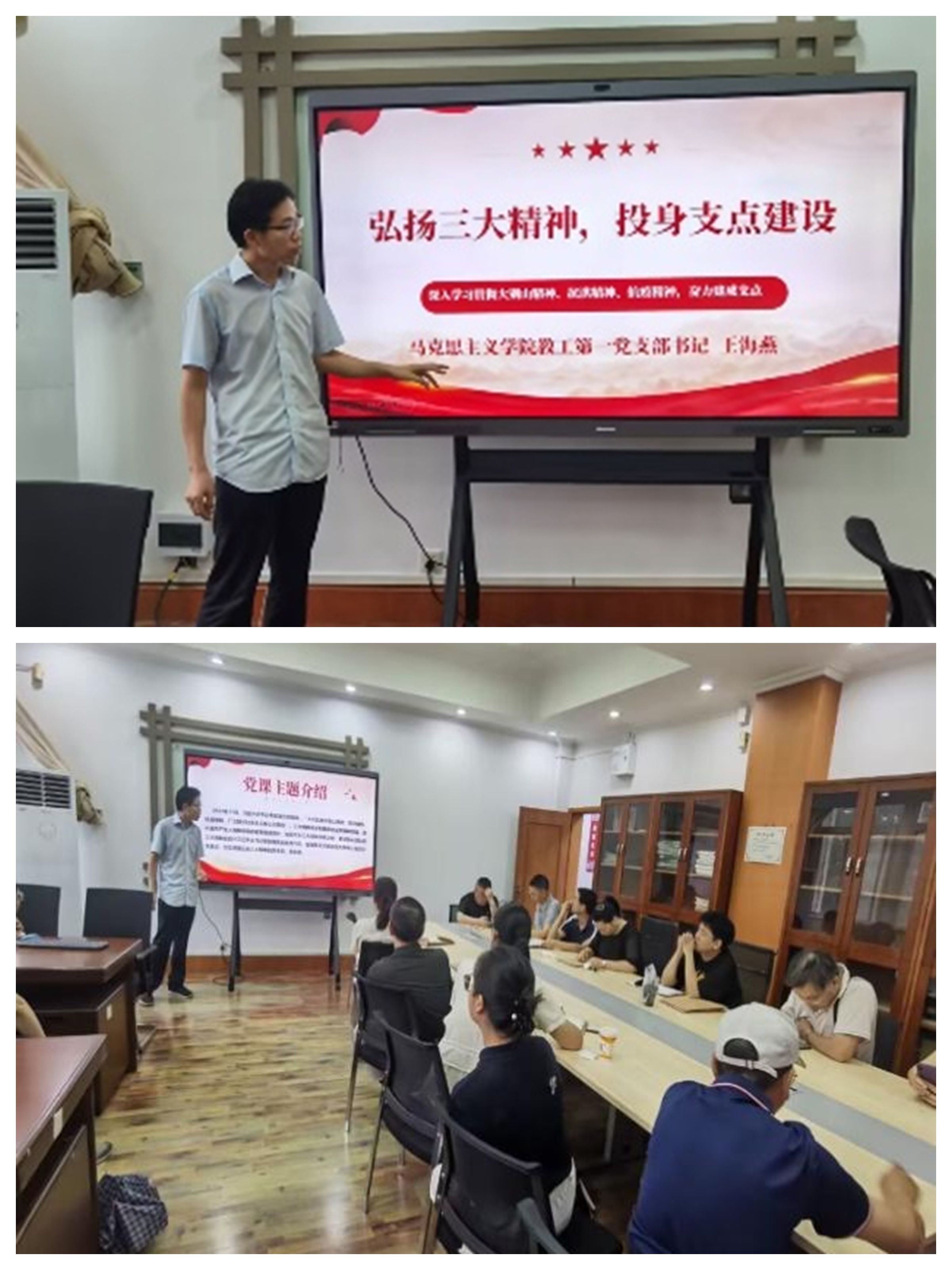 6月19日上午,凯发娱乐 教工第一党支部在南湖校区东配楼208会议室举行6月份主题党日暨党支部书记讲“弘扬三大精神 投身支点建设”专题党课活动。会议由支部书记王海燕同志主持。
