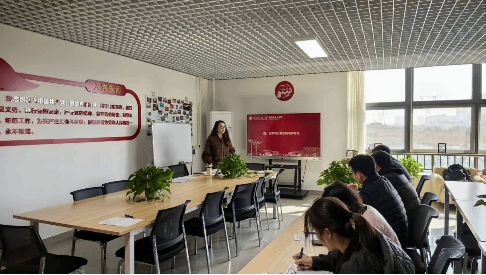 本次主题党日活动以齐唱国歌、重温入党誓词开启。首先,由冯梦瑶同志带领大家集中学习了《中国共产党章程》第二章第十条关于党的民主集中制原则。